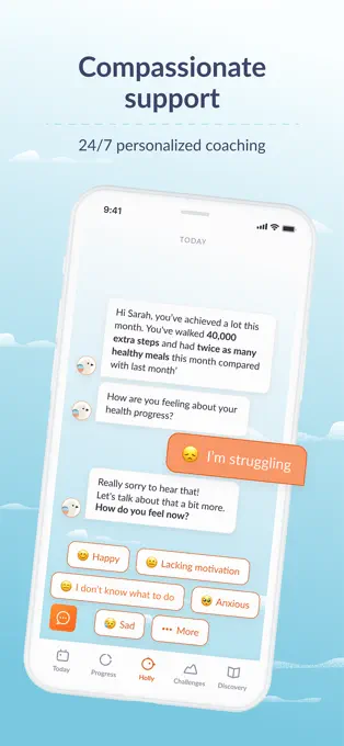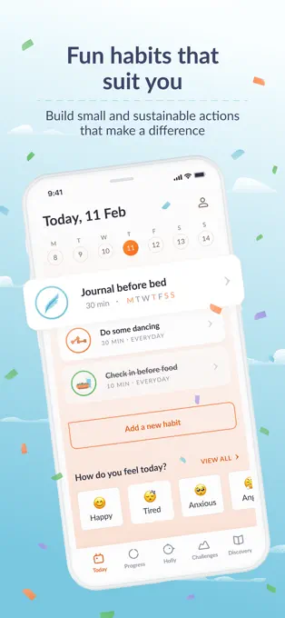 Només disponible en anglès. Coneix Holly Health, la teva nova animadora de salut i entrenadora d’hàbits. Uneix-te a milers d’usuaris que converteixen les seves intencions de salut en accions per obtenir resultats duradors. Reconstrueix la teva relació amb el menjar si estàs experimentant un afartament/menjar emocional, sense cap recompte de calories ni dietes. Si estàs experimentant esgotament o estrès, Holly t’ajuda a sentir-te més tranquil, mitjançant la consciència i eines recolzades per la ciència. I quan sents la necessitat d’aquest impuls addicional, Holly t’ajuda a descobrir l’alegria de moure el teu cos o ser social o creatiu. Finalment, reinicieu la vostra rutina d’anar a dormir per dormir més tranquil·lament cada nit!