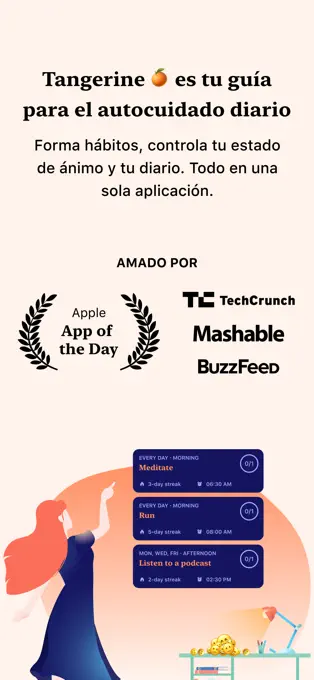 Tangerine és la teva guia per a l’autocura diària. Forma hàbits, controla el teu estat d’ànim i escriu al teu diari. Tot en una sola aplicació.