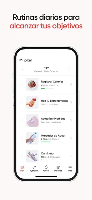 Inclou eines per monitorar la teva activitat física, la ingesta d’aigua, el dejuni i les calories, així com funcions de coaching personalitzat, desafiaments motivadors i capítols breus de teràpia cognitiva per fomentar una mentalitat positiva. BetterMe també es pot sincronitzar amb dispositius com Apple Health per fer un seguiment més precís del teu benestar global, incloent-hi la qualitat del son, els passos, la freqüència cardíaca i la composició corporal.