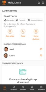 • Canal de missatgeria instantània entre l’usuari i els seus professionals vinculats.