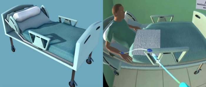 Para conseguir simular la técnica de canalización, se evalúa la capacidad de los usuarios para seguir los pasos que hay que efectuar para completar con éxito todo el proceso evitando cometer errores. Esto se lleva a cabo haciendo que el objetivo sea seleccionar el utensilio u objeto médico adecuado a utilizar, según el punto de la técnica en el que se encuentran, y acercarlo al brazo del paciente para que éste lo coloque automáticamente en la posición adecuada representante cómo y dónde se debería colocar en un caso real.